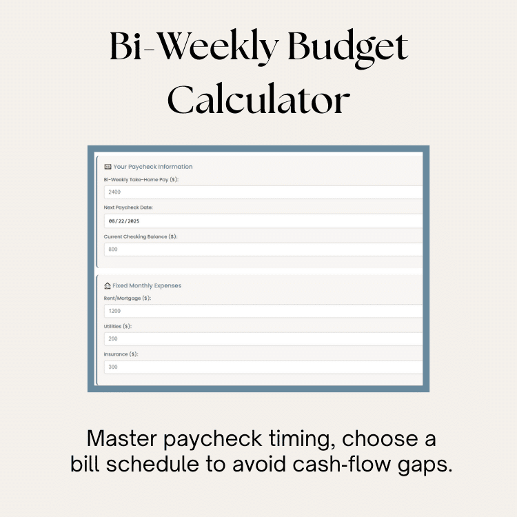 Pro Tip: For paycheck-based planning, use our Bi-weekly Budget Calculator to line up bills and income so you’re never caught short between paydays.